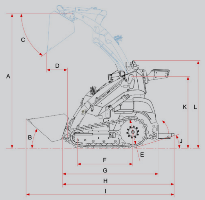 G. Teljes hossz (földkanál nélkül, felhajtott platformmal): 1.435 mm